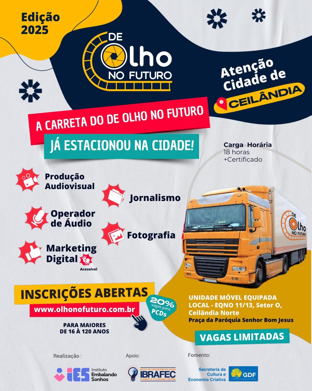 Carreta De Olho no Futuro abre inscrições para cursos gratuitos de audiovisual e comunicação em Ceilândia